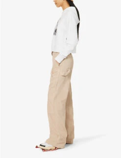 - Relaxed fit, mid-rise, wide leg, elasticated waistband, two slip pockets at front, all-over abstract pattern, soft crepe texture