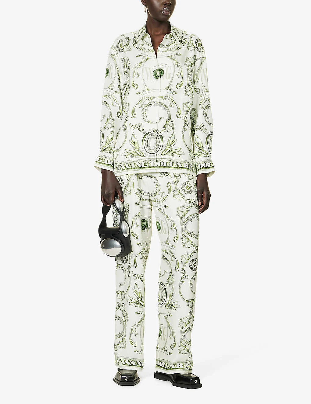 ALEXANDER WANG Graphic-print Split-hem Relaxed-fit Silk Blouse