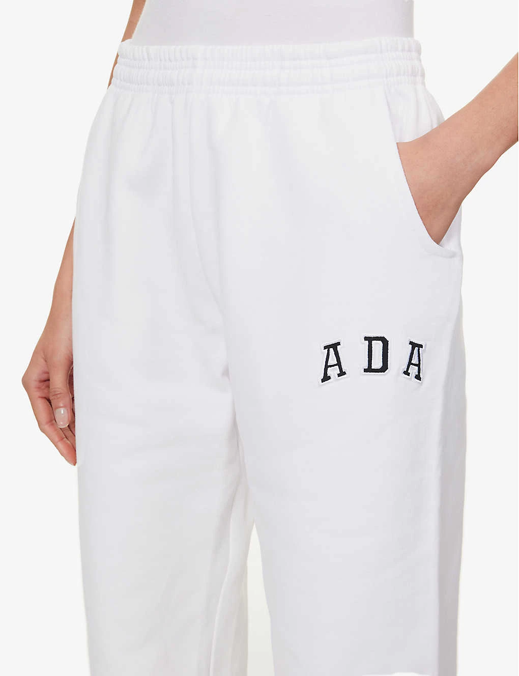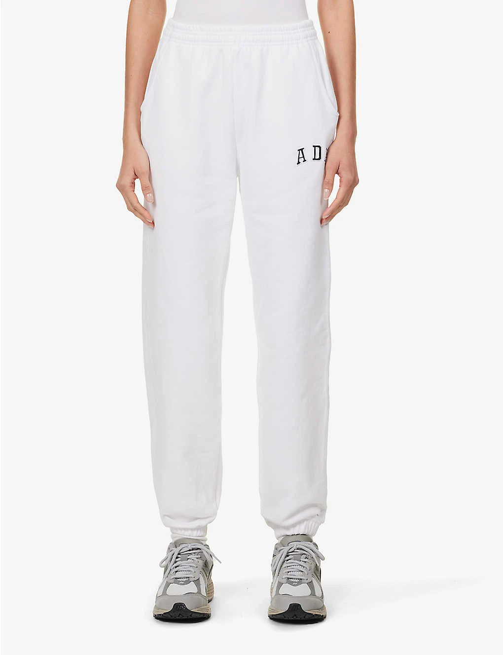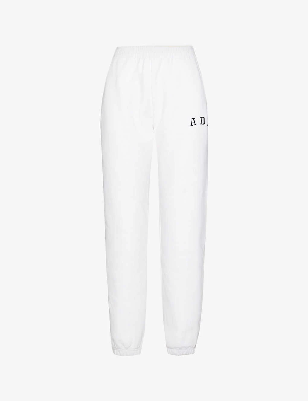- Relaxed fit, mid-rise, tapered leg, drawstring elasticated waistband, two slip pockets at front, brand embroidery at front, patch pocket at back, silver-toned hardware, elasticated hems