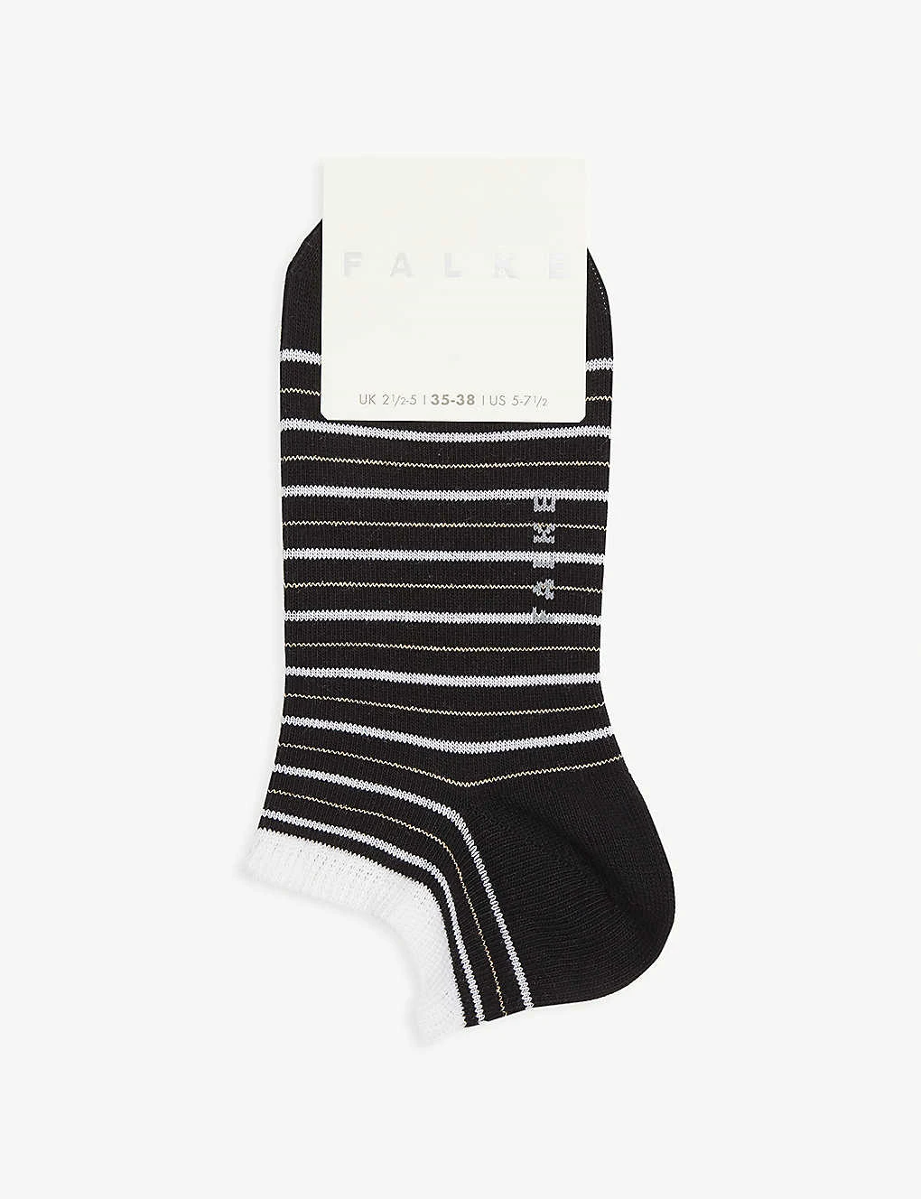 Falke trainer socksStriped, metallic glitter, branding at sole67% cotton, 32% polyamide, 1% metal fiberMachine wash