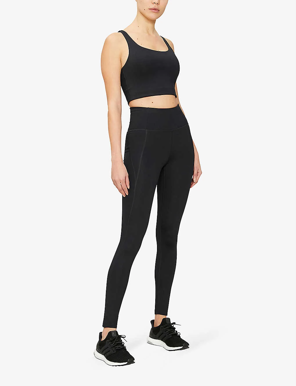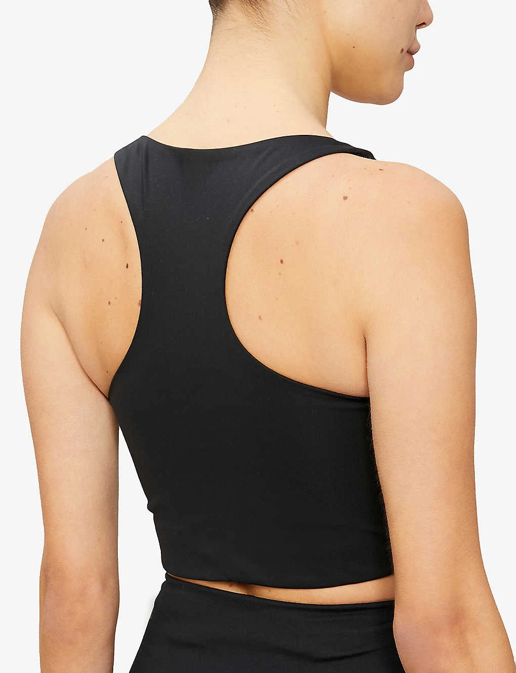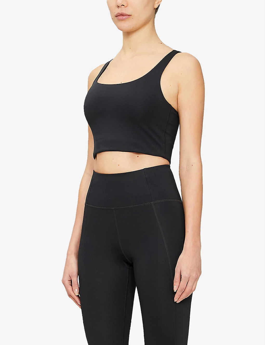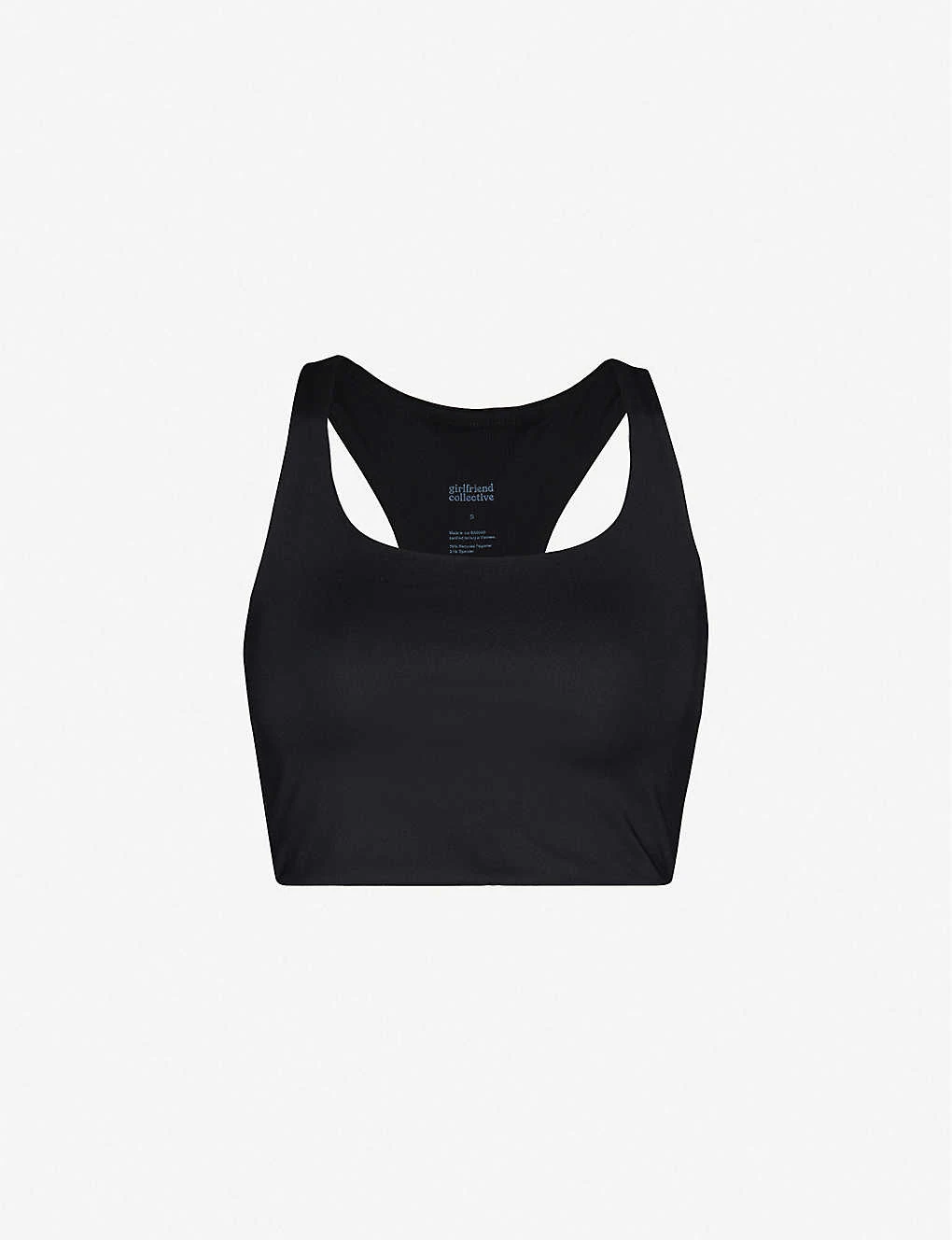 Girlfriend Collective sports stretch-jersey braDetails:Scoop neckMedium supportRacerbackElasticated underbandFully linedSlips onFabric:79% recycled polyester, 21% elastaneMidweight, slight stretchSize & Fit:Cut to a fitted silhouetteTrue to sizeCare:Machine wash