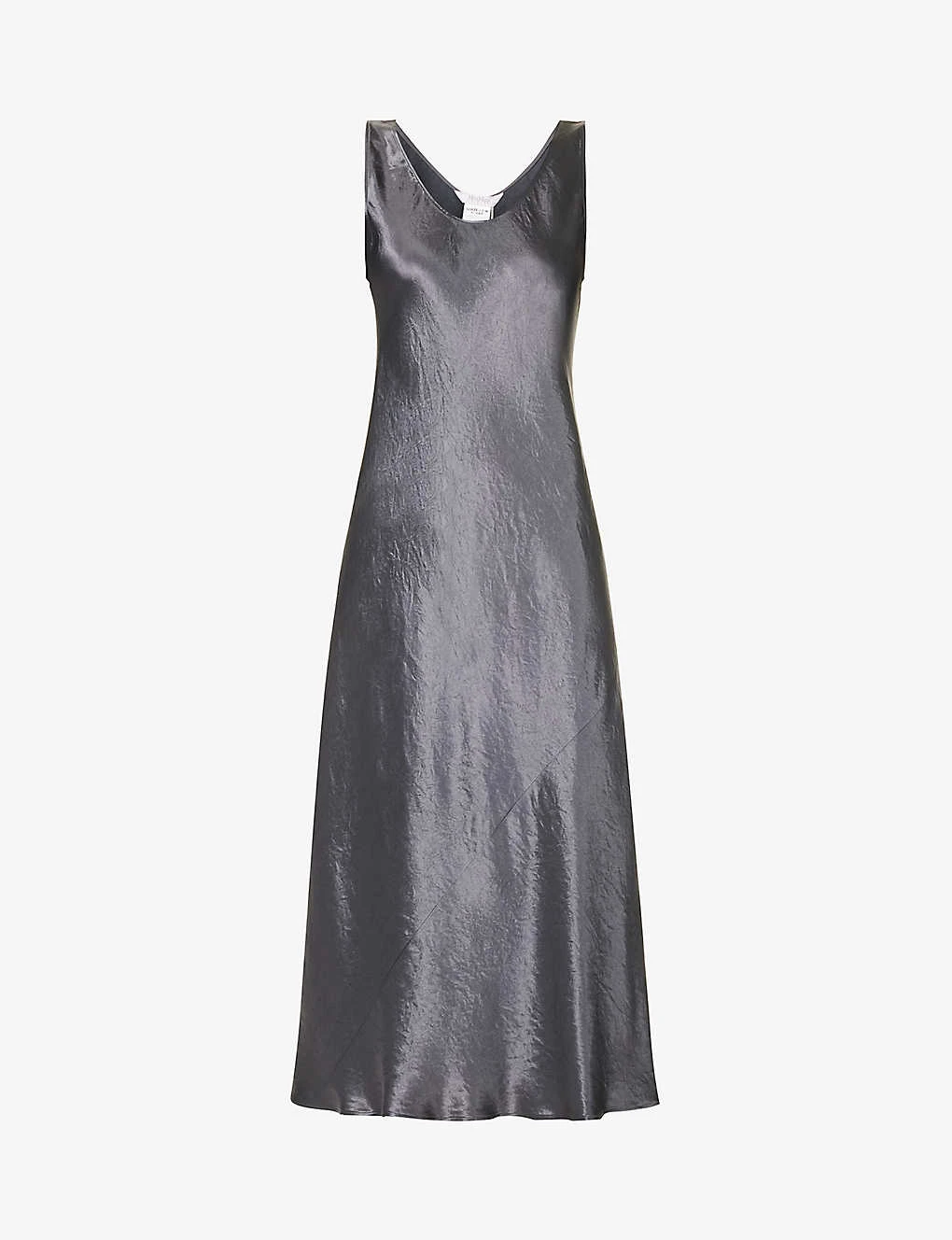 - Regular fit, scoop neckline, sleeveless, soft crease satin texture, flared hem