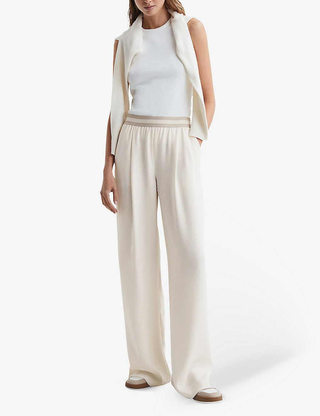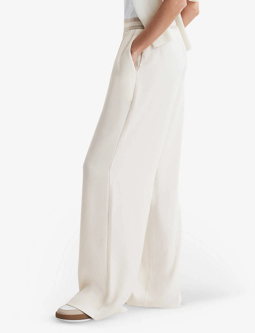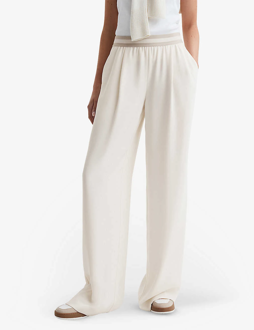 Reiss Abigail Striped-waistband Wide-leg Mid-rise Woven Trousers