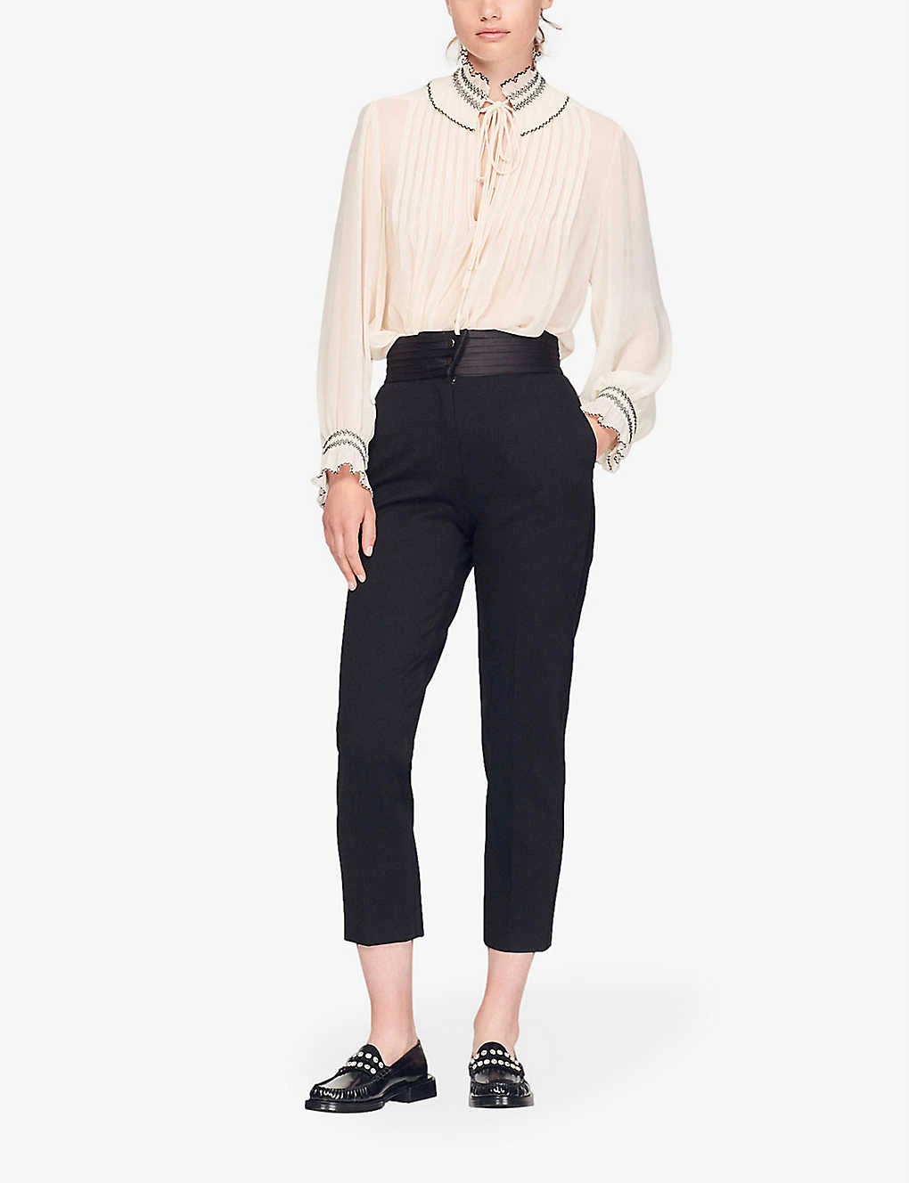 Sandro High-rise Satin-waist Stretch-woven Trousers