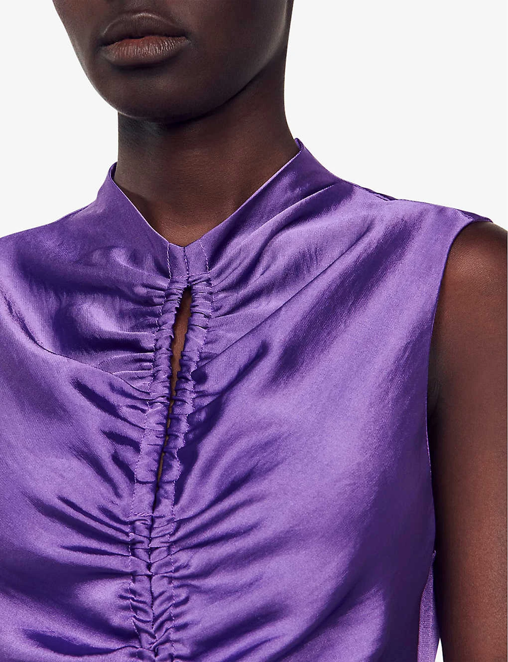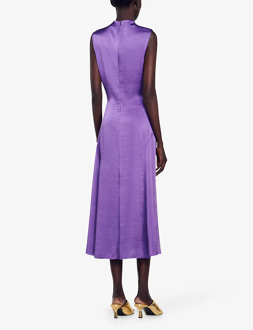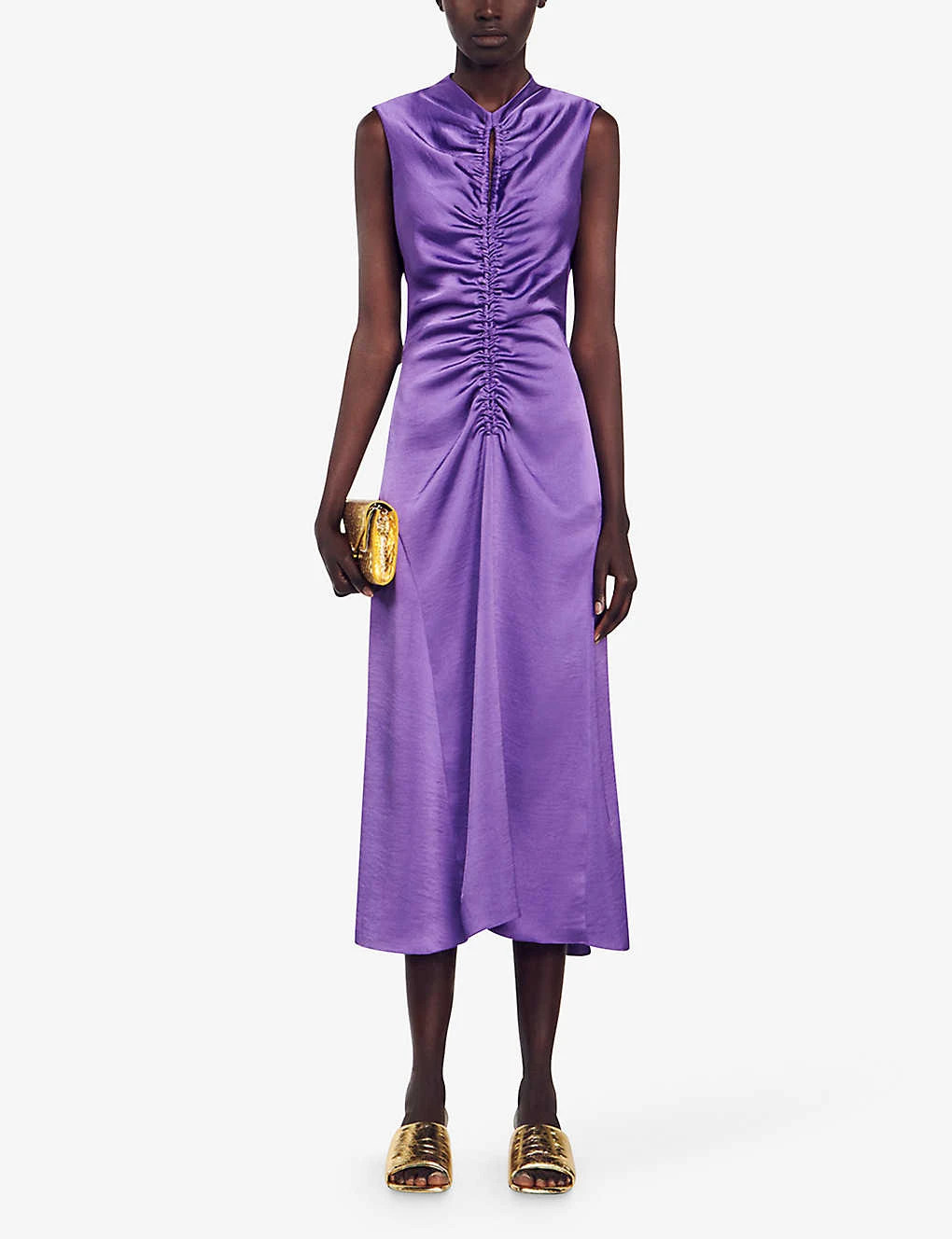 Sandro Titanic Ruched-bodice Sleeveless Satin Midi Dress