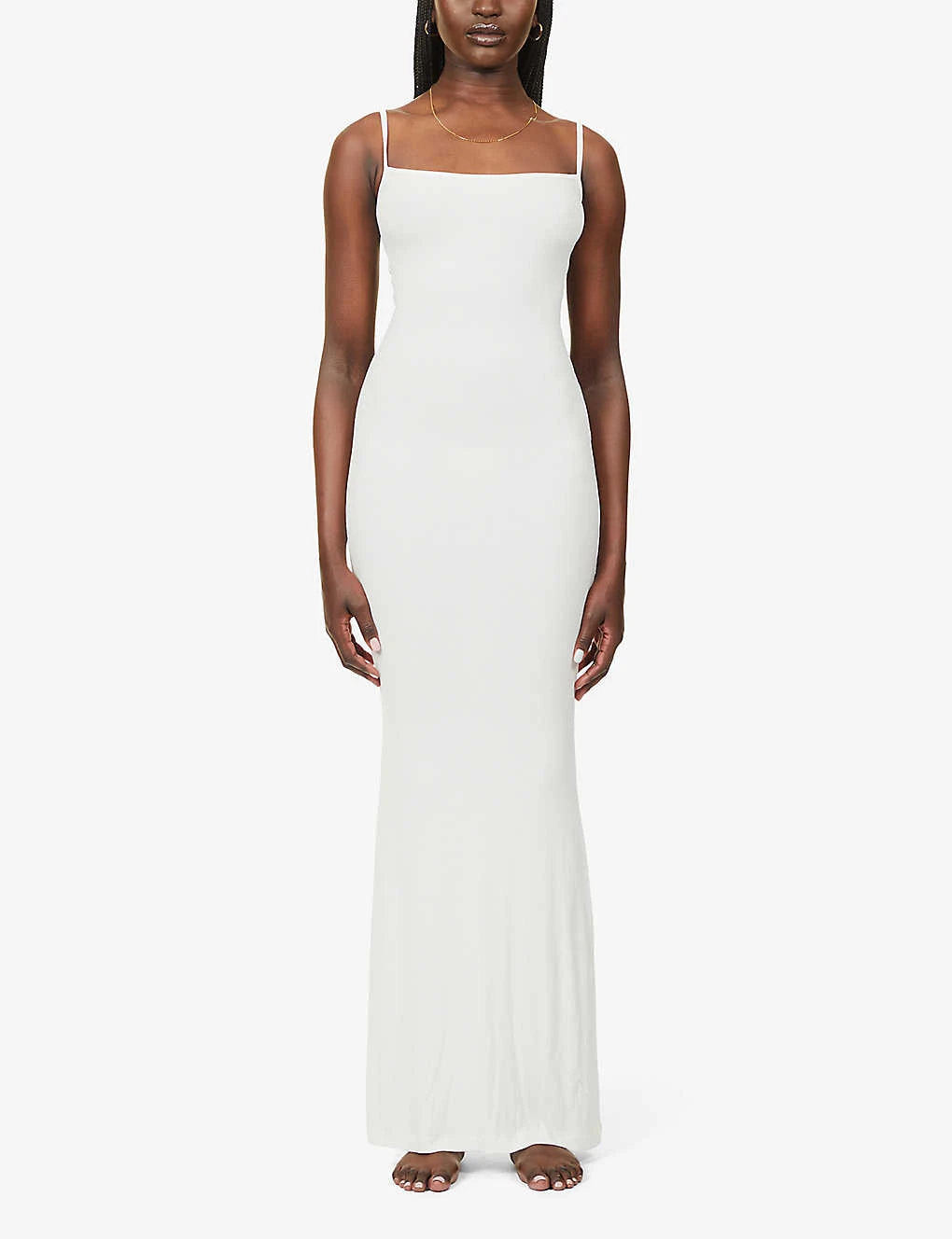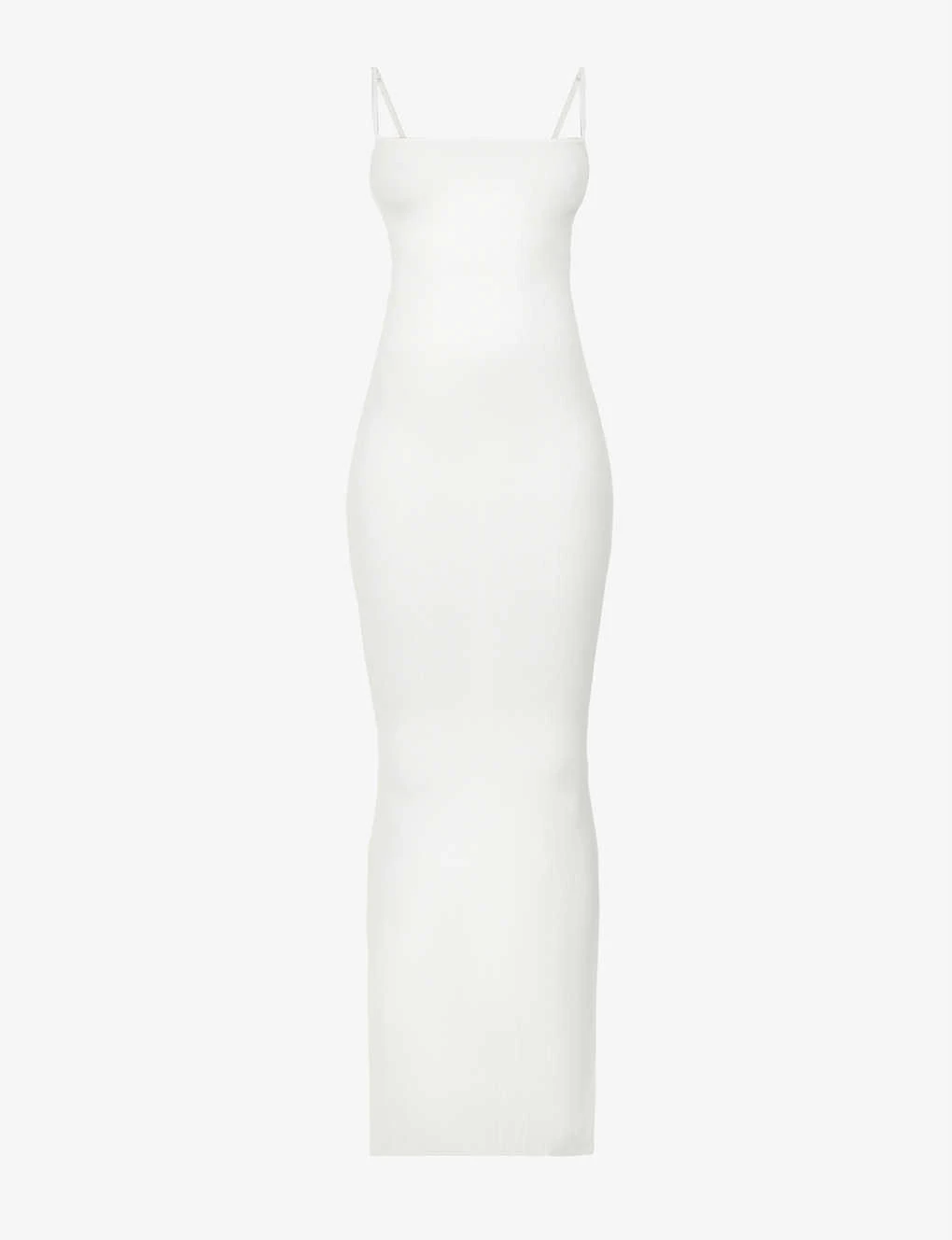 - Fitted, scoop neck, adjustable shoulder straps, branded text tab at back, all-over ribbed weave