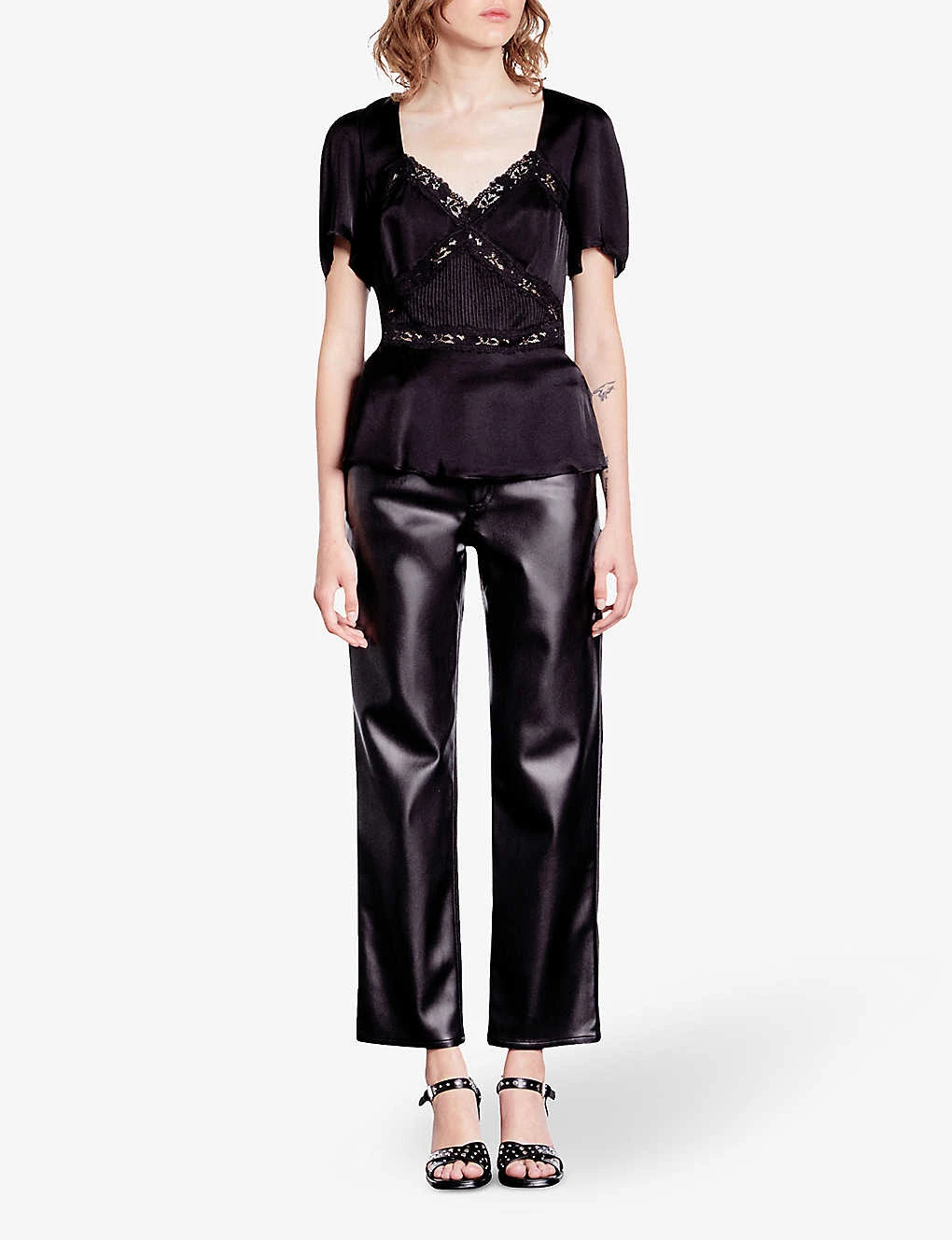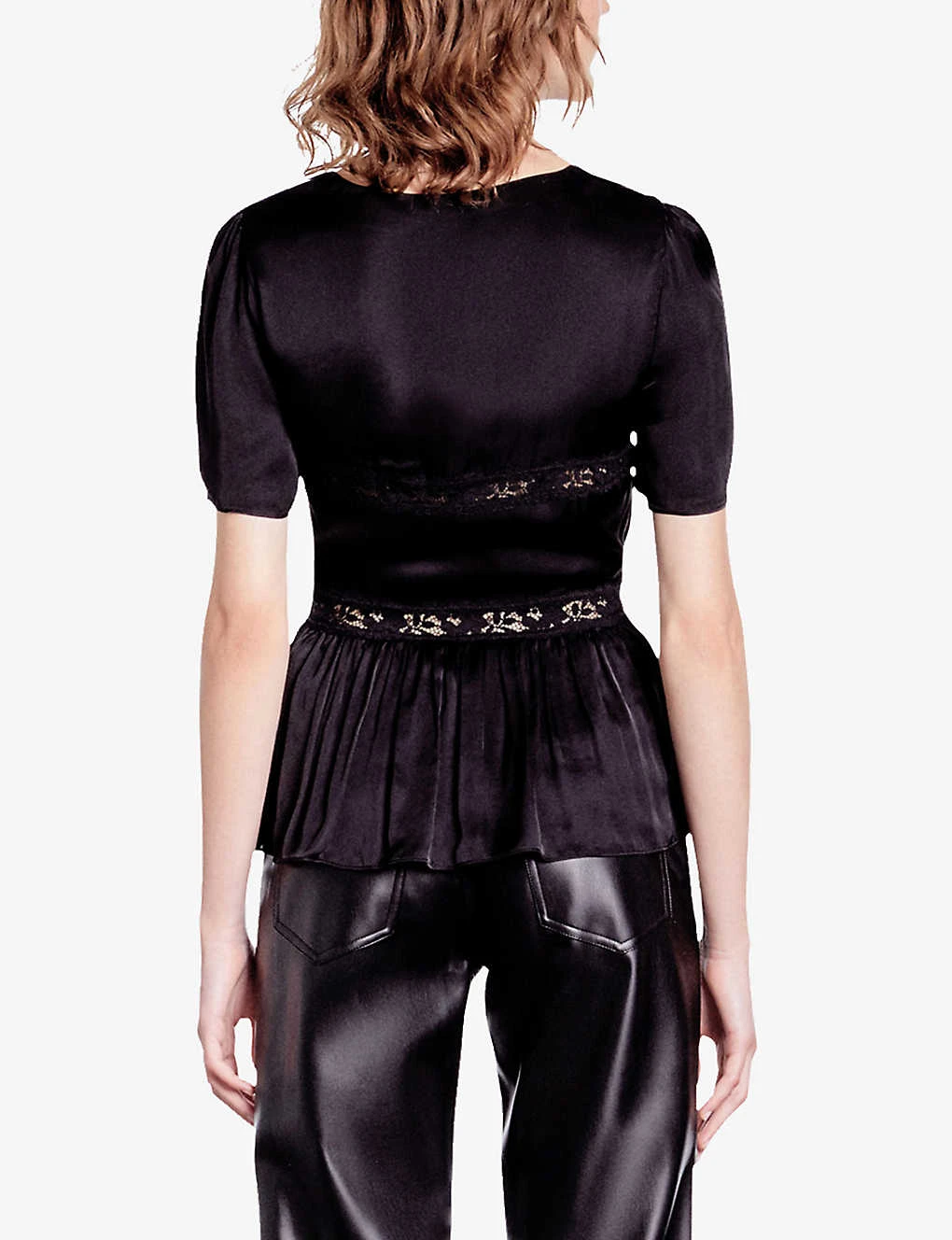 THE KOOPLES Lace-trim Short-sleeve Woven Top